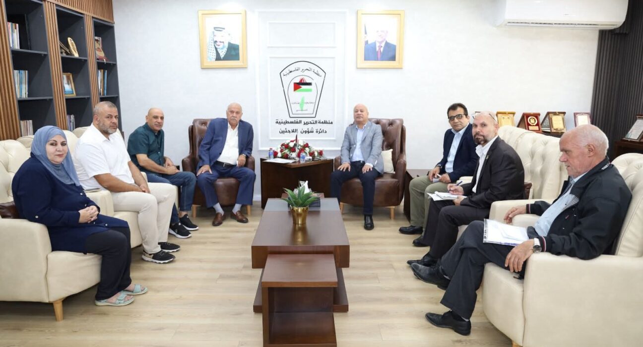استقبل عضو اللجنة التنفيذية لمنظمة التحرير الفلسطينية، رئيس دائرة شؤون اللاجئين د. أحمد أبو هولي، اليوم الأربعاء، وفدًا من اللجنة الشعبية لخدمات مخيم دير عمار للاجئين (قرب رام الله)، بحضور وكيل الدائرة أنور حمام، ومدير عام المخيمات محمد عليان.