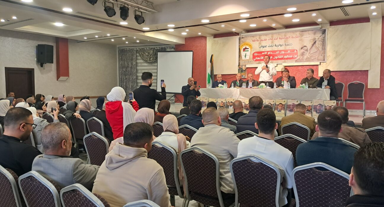 عقدت اللجنة الشعبية لخدمات مخيم بلاطة، اليوم الثلاثاء الموافق 14/4/2026، جلسة حوارية سياسية بعنوان: “قانون إعدام الأسرى من منظور القانون الدولي الإنساني”، وذلك في قاعة “سفن دريمز” في سهل بلاطة، بحضور المحامي أيمن عودة، رئيس تحالف الجبهة العربية للتغيير، وعدد من الشخصيات السياسية والقانونية والأكاديمية، إلى جانب عدد من المهتمين وأبناء المخيم.
