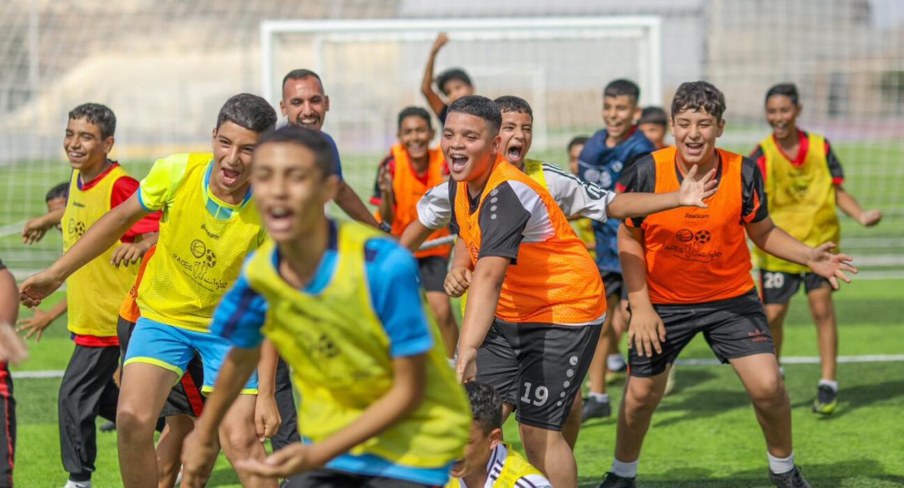 يلعب الأطفال كرة القدم في مخيم بلاطة بالأزقة الضيقة، تتطاير ضحكاتهم مع كل تمريرة، وتصبح الجدران شاهدة على أحلام كبيرة تولد من مساحات صغيرة. تضيق المساحات في المخيمات، لكن اللاجئين يصنعون من كل زاوية عالمًا لأحلامهم.