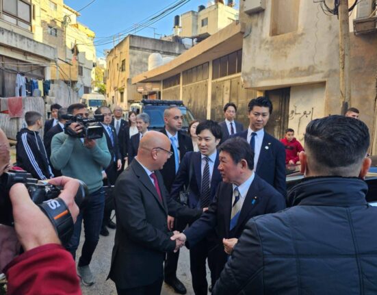 وزير الخارجية الياباني يطّلع ميدانياً على مشاريع المنحة اليابانية في مخيم الجلزون