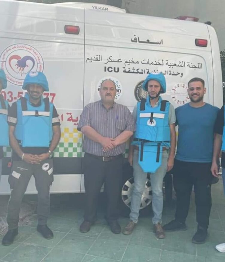 سلم رئيس لجنة خدمات مخيم عسكر القديم، ماجد أبو كشك، الدروع الواقية لطاقم الإسعاف التابع.