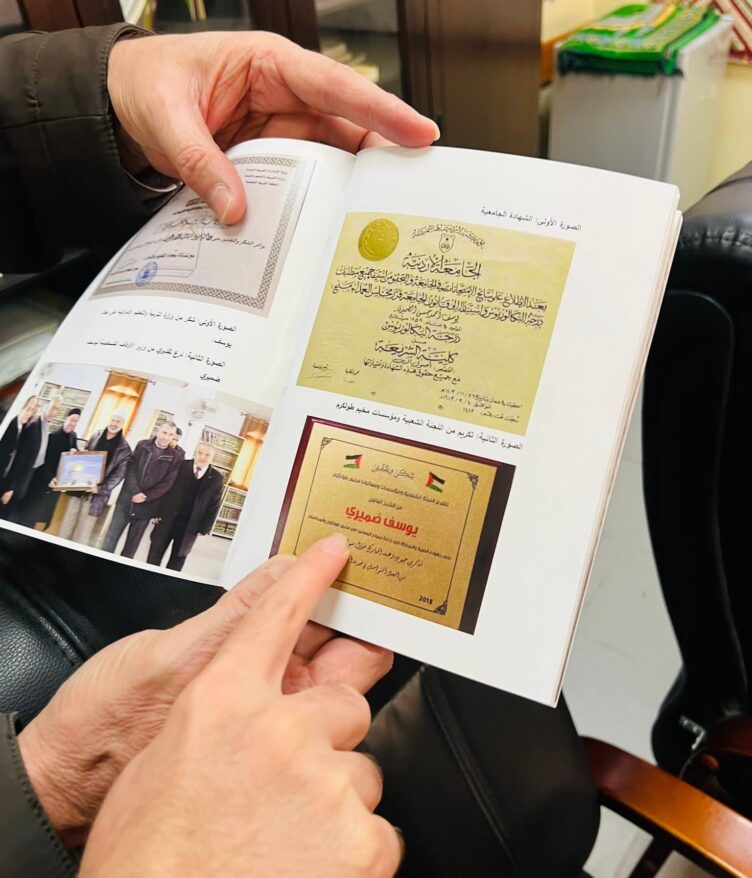 سلّم نجل الفقيد الشيخ يوسف ضميري، كتابين توثيقيين إلى رئيس اللجنة الشعبية لخدمات مخيم طولكرم.